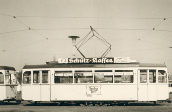 | Den letzten 2-achsigen VÖV-Standardtyp repräsentieren die beiden Triebwagen, die 1955 beschafft wurden als weitaus größere Fahrzeuge bereits erhältlich gewesen wären. Vier solcher Fahrzeuge wurden später von den Bahnen der Stadt Monheim übernommen. | Hersteller: | DWM, Berlin | |